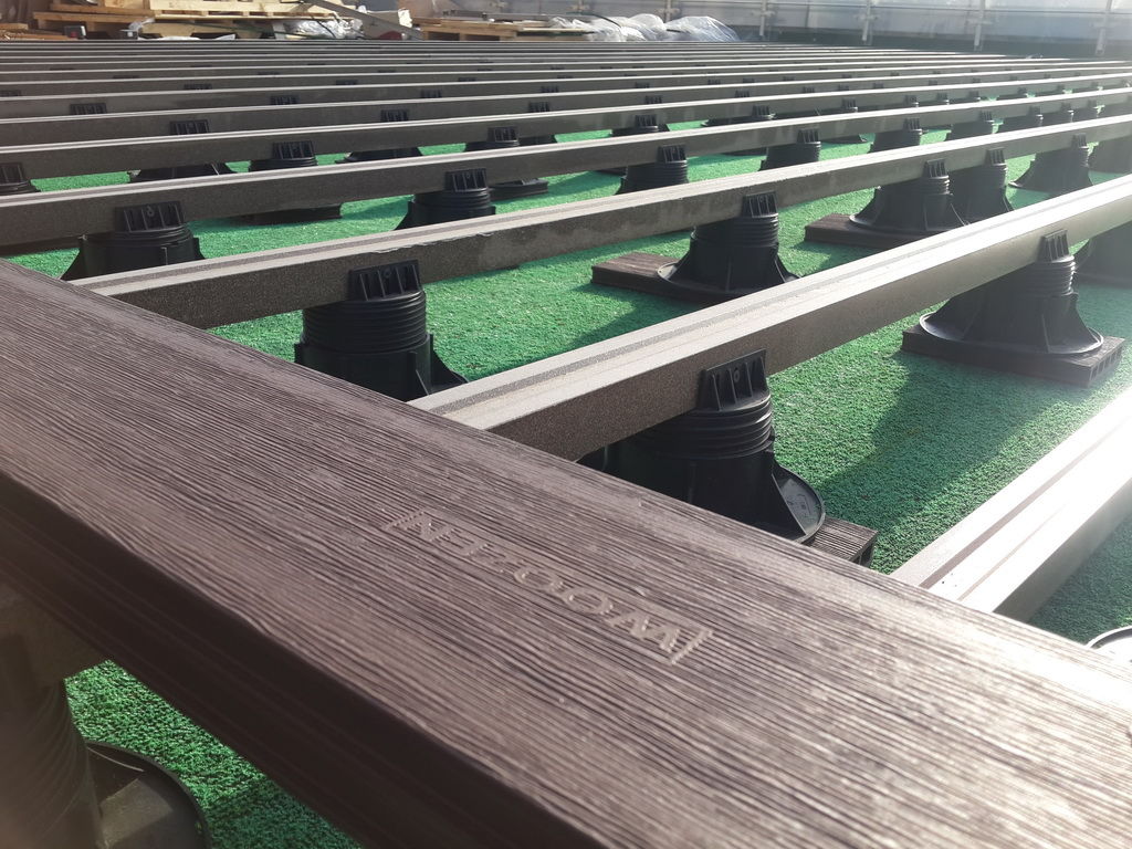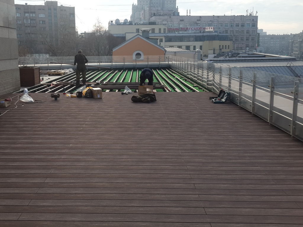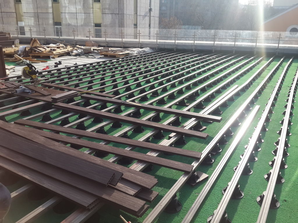 Эксплуатируемая кровля с регулируемыми опорами под террасной доской